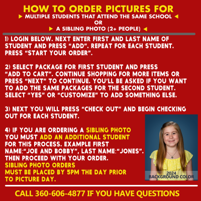 If you are ordering a photo of your children together (sibling photo), you will need to order prior to 5pm the day before pictures are taken. Only students who have pre-ordered by this deadline will be photographed as a "sibling/buddy photo".