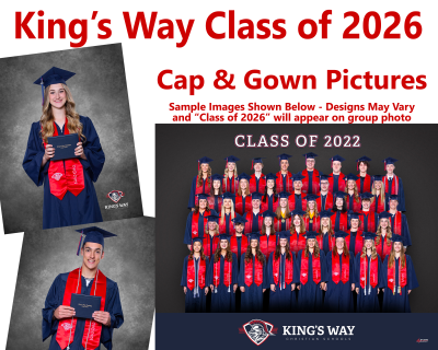 KWCS Class of 2026 Senior Cap & Gown Picture Day will be held on Monday, March 9th from 8am-11am at KWCS.